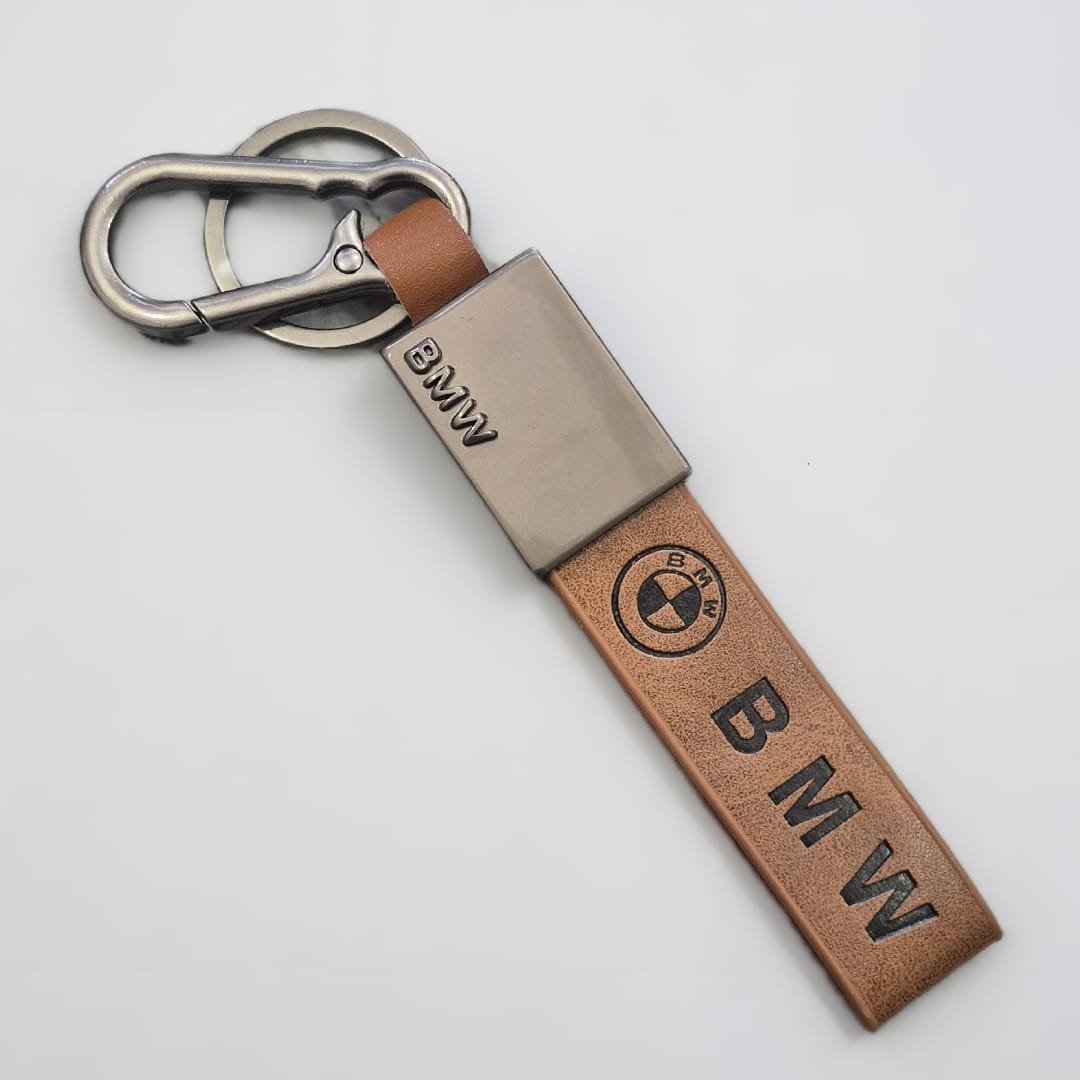 SDL 1 Piece of Premium BMW Printed Tag Keychain Gunmetal Finish, Brown Leather Strap, Metal Hook Design, Modern Minimalist Style OG Edition