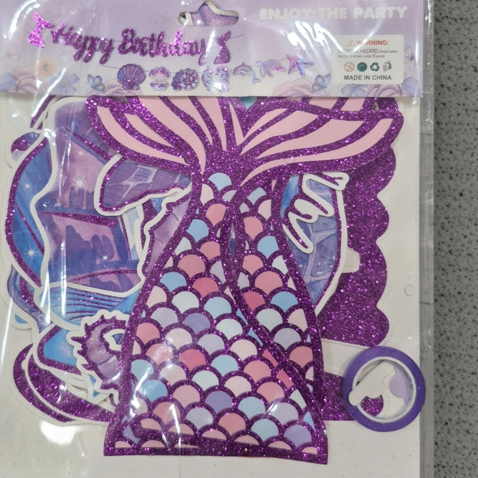 SDL 1 Set of Happy Birthday Banner of Mermaid Theme for Kids and Girls